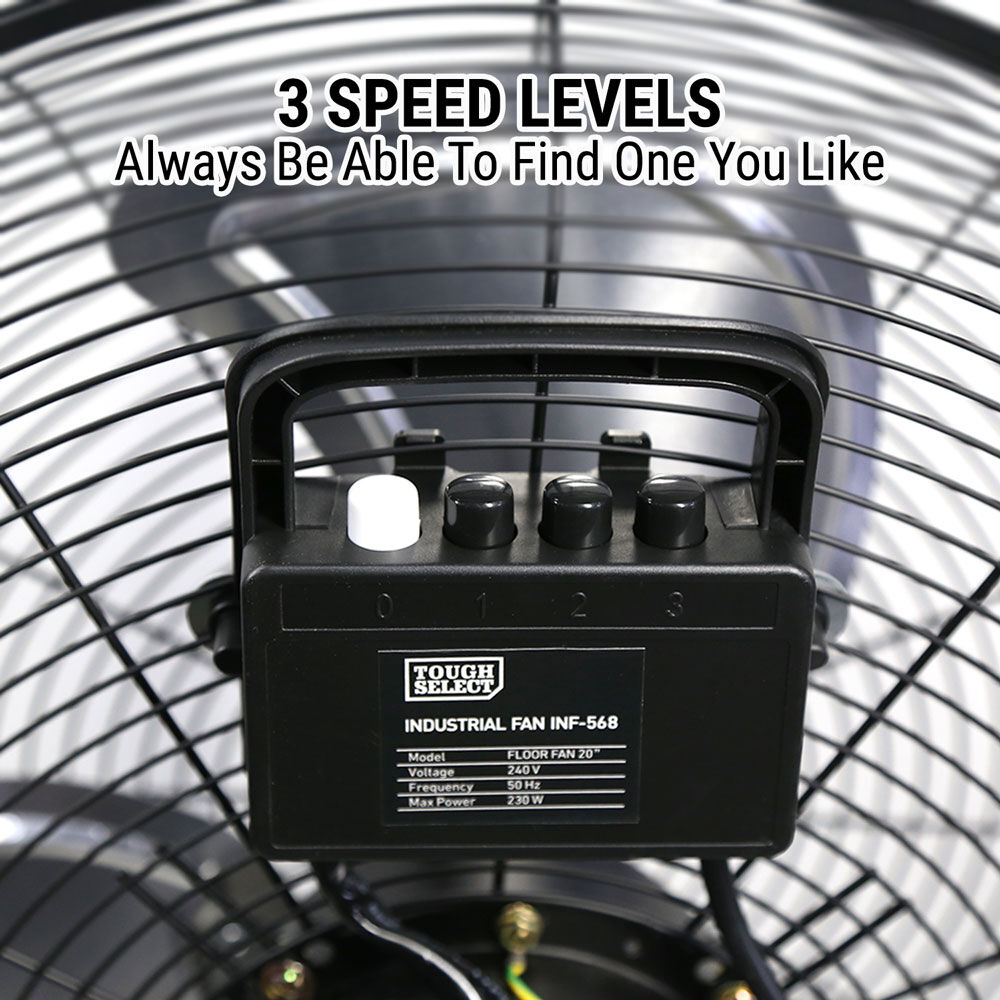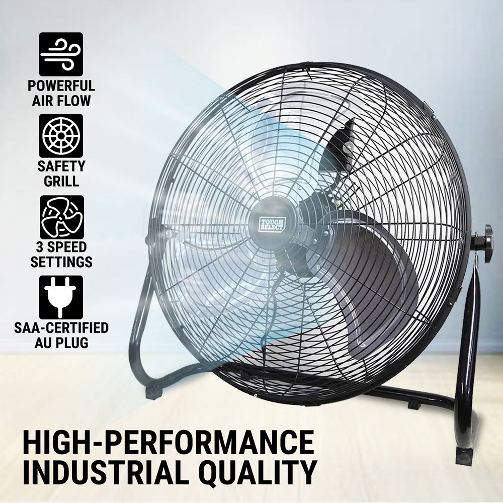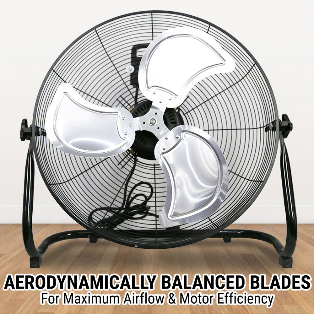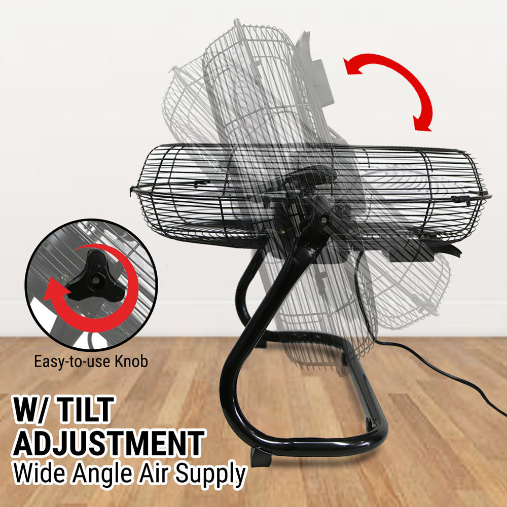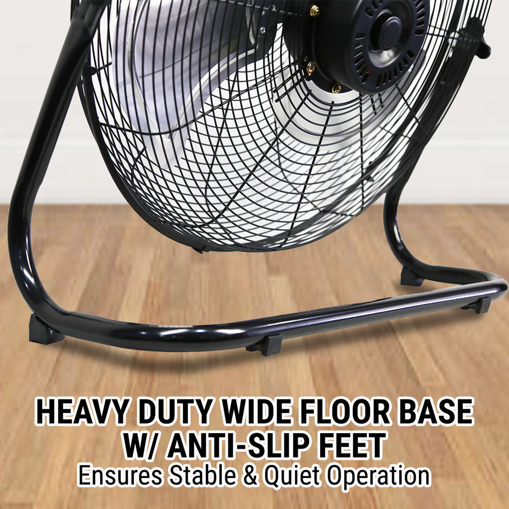 This floor fan provides powerful airflow to quickly cool the room and aerodynamically balanced 3 blades for maximum airflow and motor efficiency. Applicable to factory, workshop, patio, office, gym, garage.
