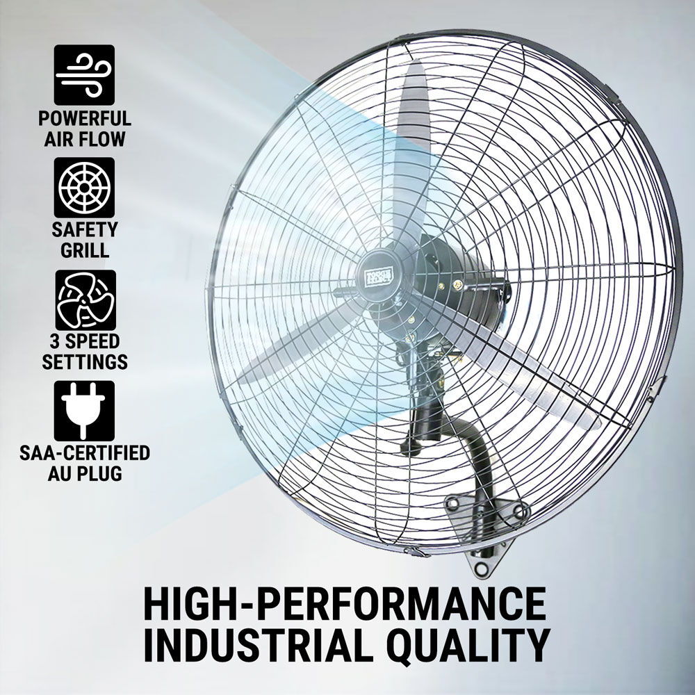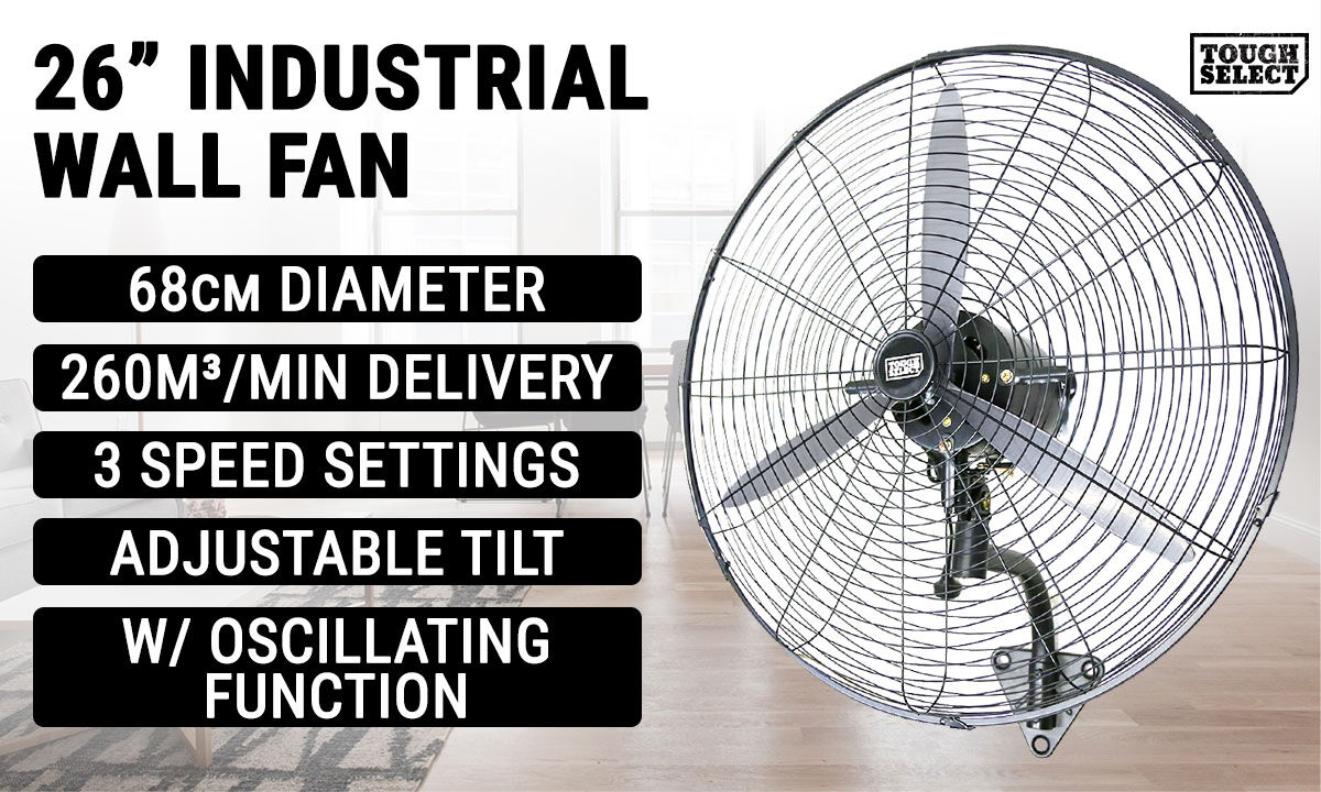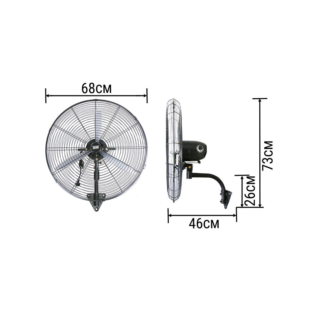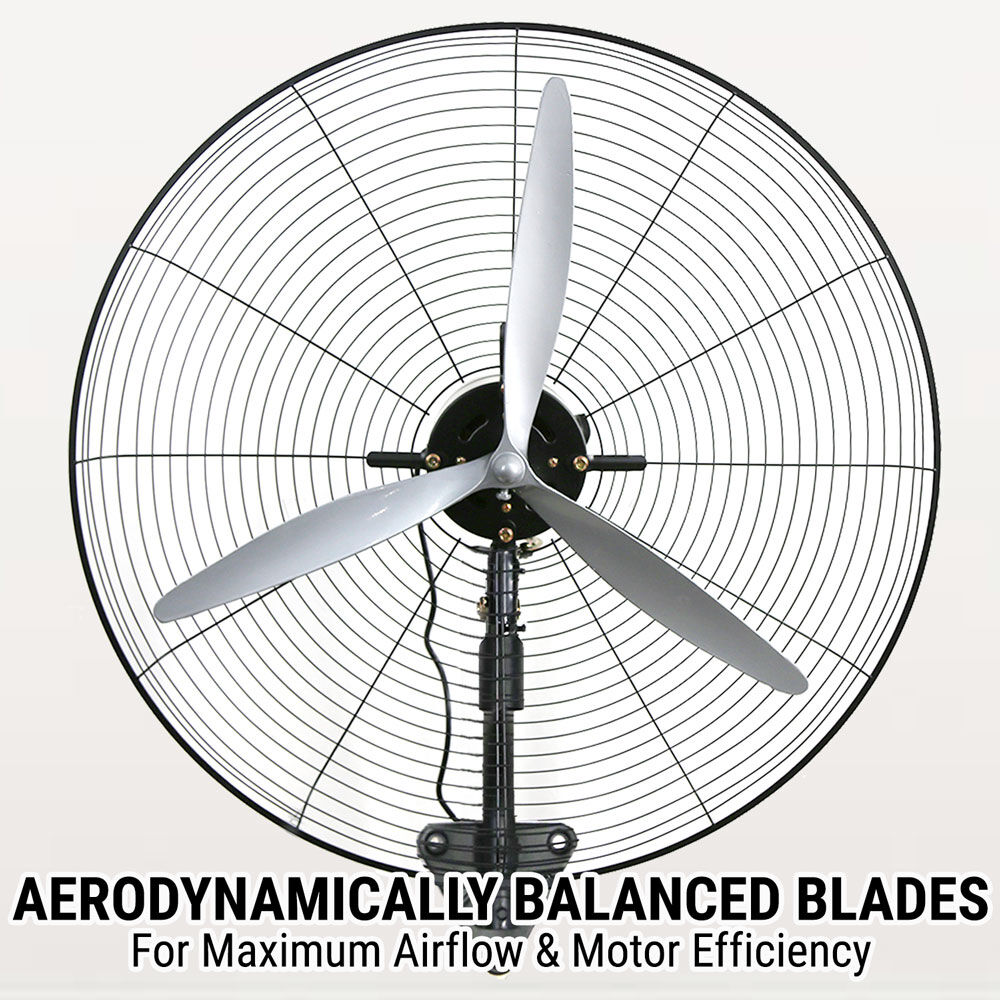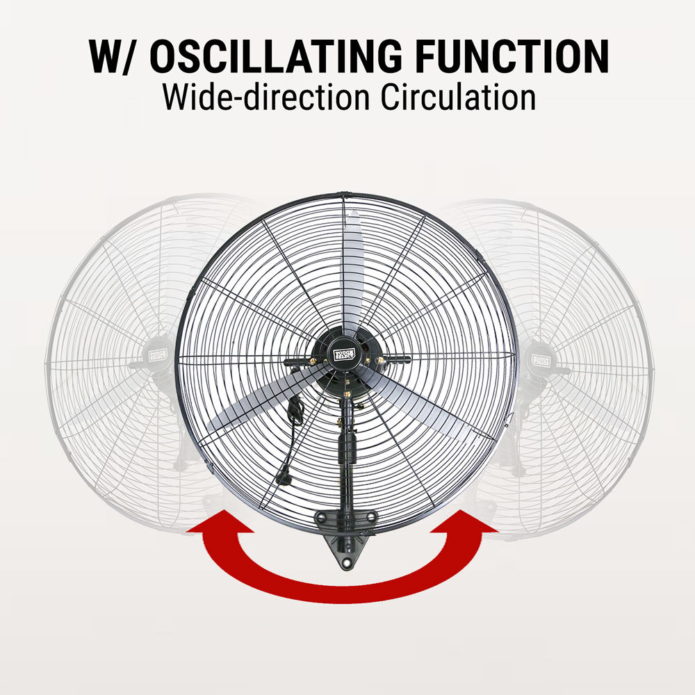 This wall fan provides powerful airflow to quickly cool the room and aerodynamically balanced 3 blades for maximum airflow and motor efficiency. Applicable to factory, workshop, patio, office, gym, garage.