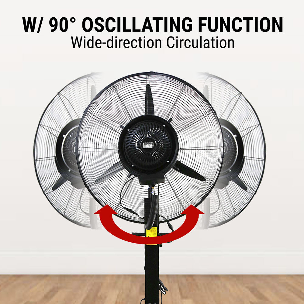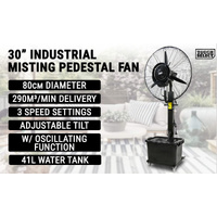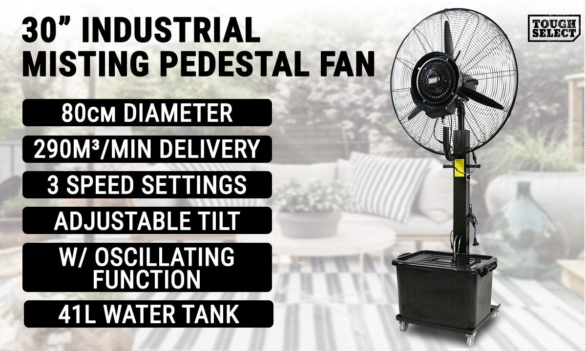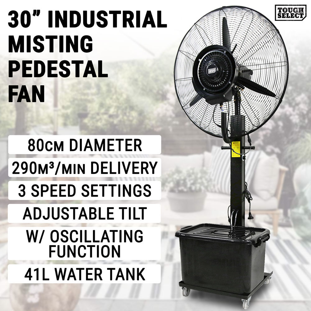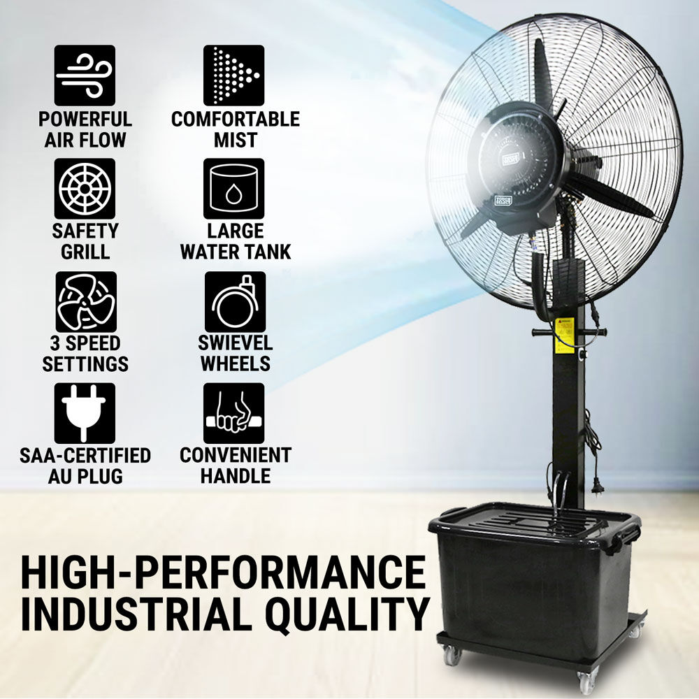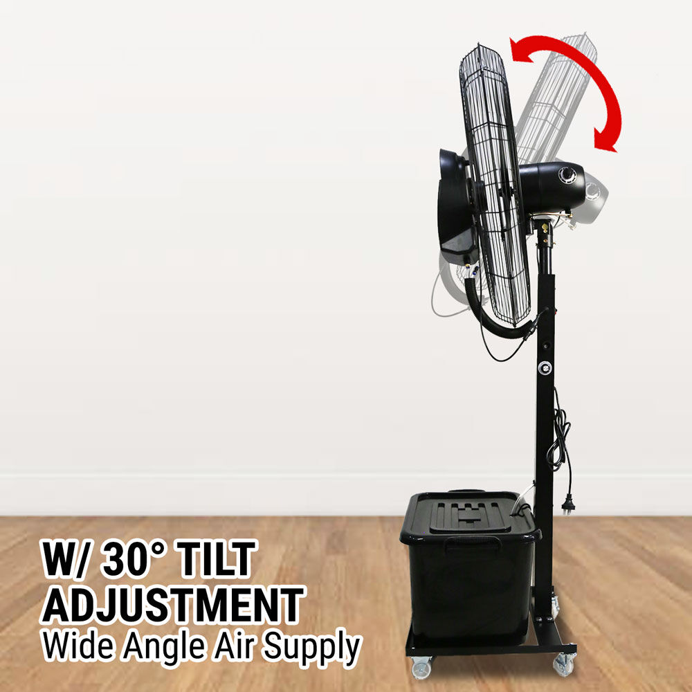 Stay cool and comfortable even in the hottest environments with this Industrial Misting Pedestal Fan. Designed for large spaces and outdoor areas, this fan combines powerful air circulation with fine misting technology to deliver effective cooling performance for workshops, patios, warehouses, and events.