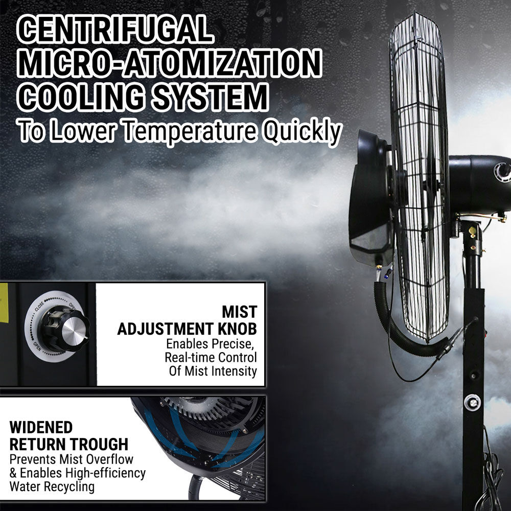 • Efficient misting function: integrated misting system produces a fine, refreshing spray to lower ambient temperature quickly