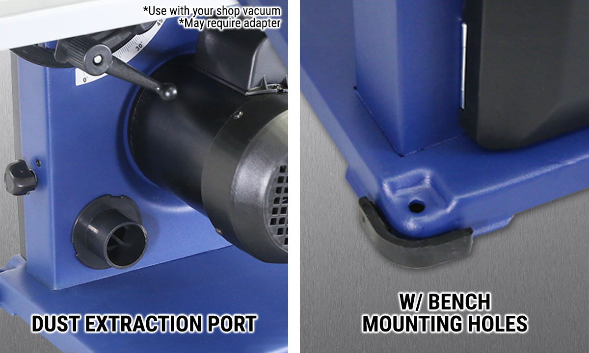 • Dust extraction port for a vacuum or dust extractor to remove dust and debris