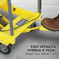 • Features a foot-operated hydraulic system for reliable and controlled lifting without the need for external power sources