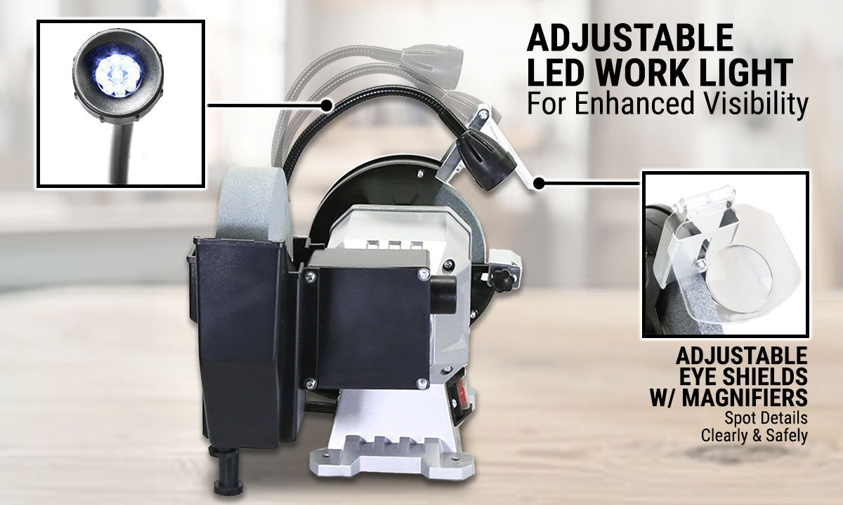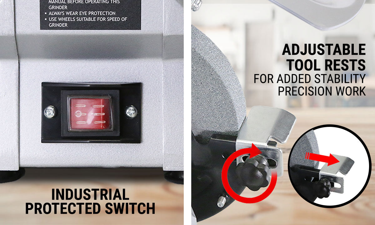 • Includes an adjustable tool rest for secure and precise workpiece positioning