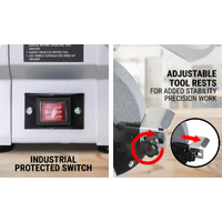 • Equipped with a 150mm dry wheel and a 200mm wet wheel for versatile grinding and sharpening tasks