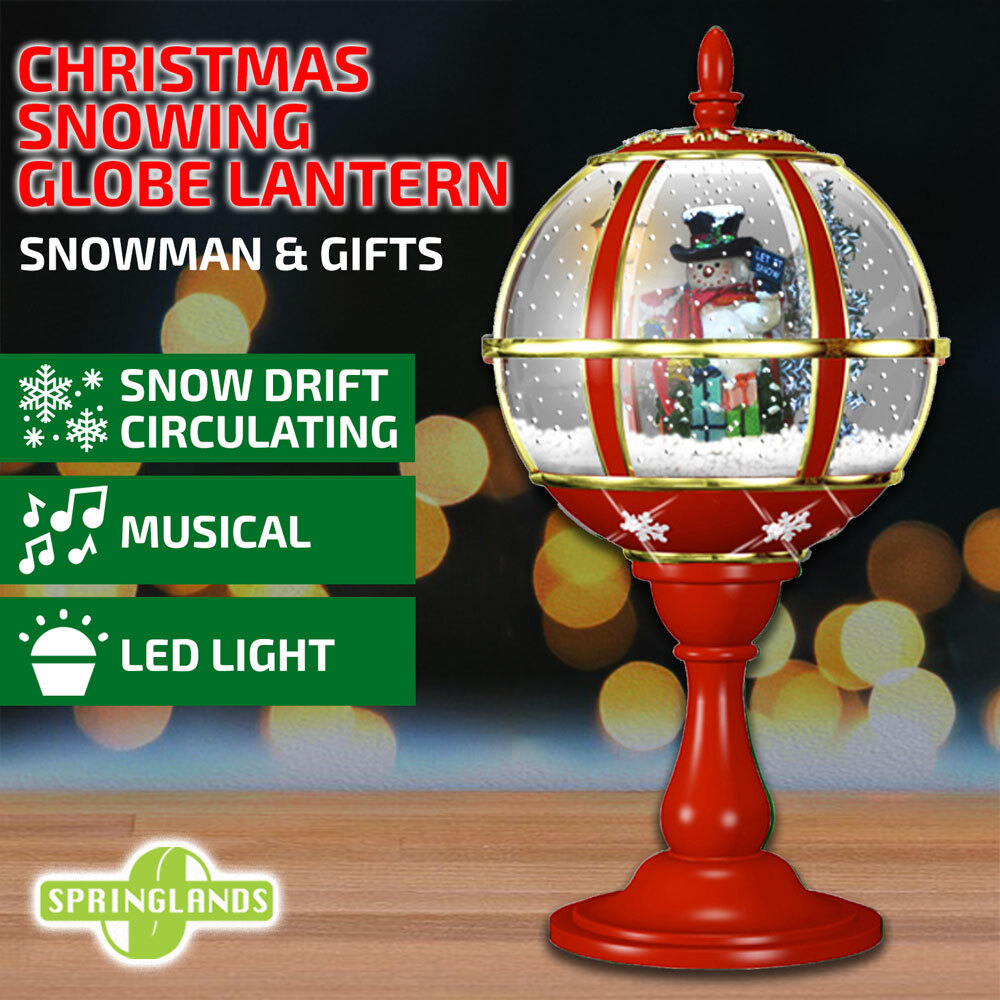 Add a lovely festive touch to your home with this magical snowing globe lantern. Comes in a beautiful red and gold colour with a Christmas snowman design. It has LED lights inside the top which makes the snowing effect look fantastic and realistic. It also plays classic Christmas musics!