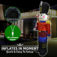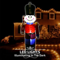 This inflatable Nutcracker Soldier creates a cheerful festive environment. This lighted, self-inflating Nutcracker Soldier comes with everything you need for set-up and installation, including build-in fan, pegs and ropes. It has energy-efficient, long-lasting LEDs inside lighting up for better nighttime viewing. It’s perfect for Christmas parties, family gatherings, events, and outdoor decoration.