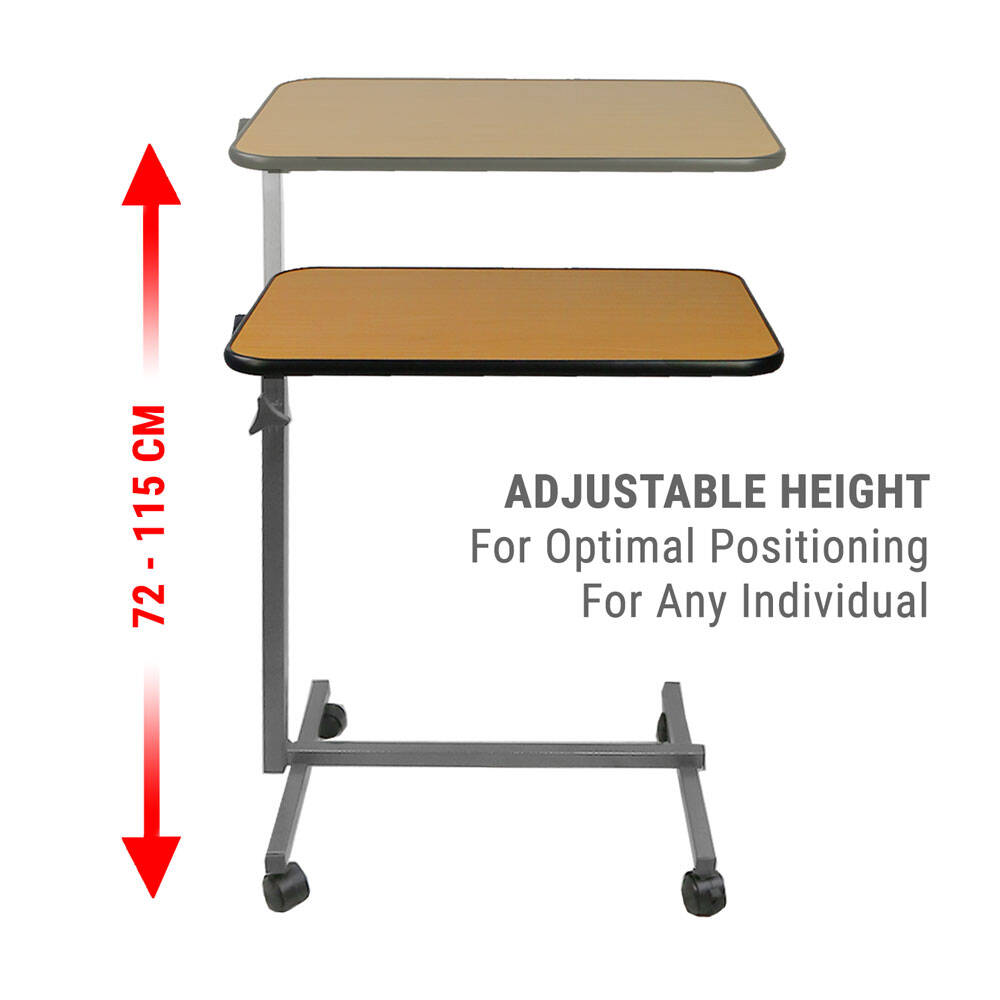 Enhance your home or hospital room with the height adjustable overbed table. This versatile piece of furniture is perfect for anyone who needs a convenient and reliable surface to eat, work, or simply relax.