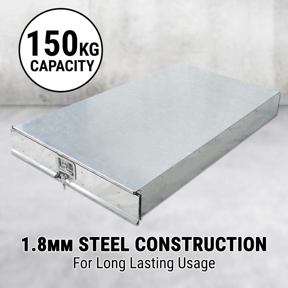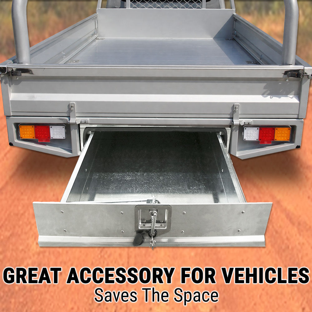 This sliding trundle drawer offers a safe and practical solution for maximising storage space in your ute tray or canopy. This tool box trundle drawer will easily fit under the trays on utes and trucks.